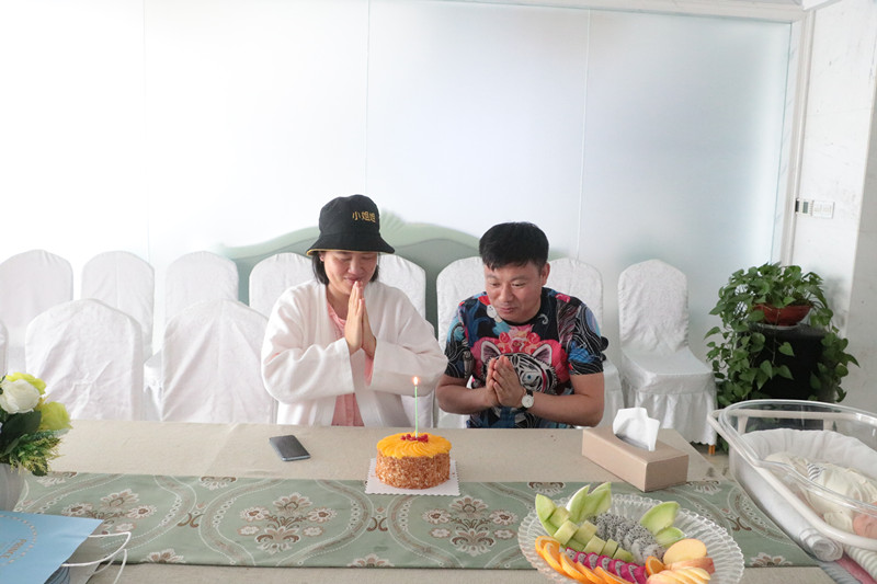 香甜的蛋糕宛如他们内心甜甜的幸福与喜悦,给自己和宝宝许下虔诚的心愿,愿宝宝健康快乐,幸福一生!
