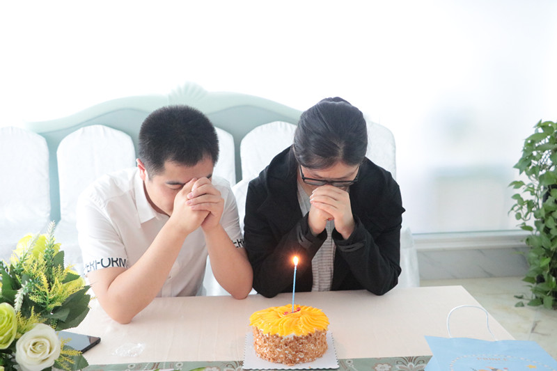 香甜的蛋糕宛如他们内心甜甜的幸福与喜悦,给自己和宝宝许下虔诚的心愿,愿宝宝健康快乐,幸福一生!
